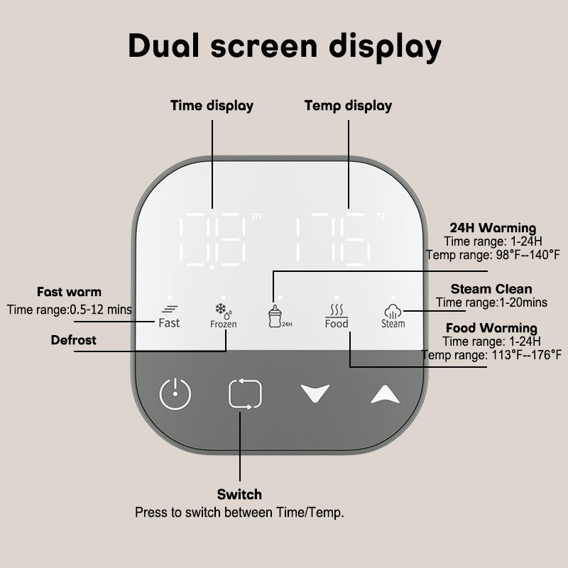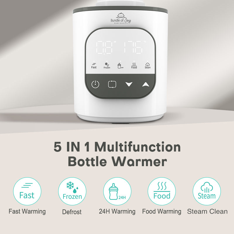 Bundle of Joy Baby Basics Baby bottle warmer is a compact and easy to use bottle warmer. It is a multi-use warmer with quick warming, 24Hr warming, food warming, and steam cleaning feature. It is easy to clean and compatible with most brand's plastic or glass baby bottles. It fits one bottle per use.